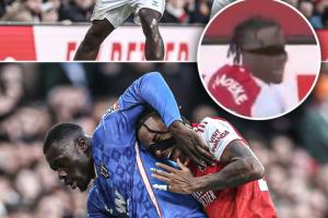 发带成眼罩了!布罗比和马杜埃凯争抢球权,扯掉了后者的发带体育资讯02月08日讯英超第25轮,阿森纳3-0桑德兰。比赛中,布罗比和马杜埃凯争抢球权,扯掉了后者的发带。马杜埃凯无奈摊手