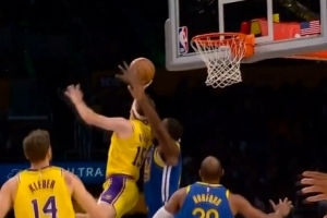 破荒!里夫斯持球强攻 倚住防守高难度反篮打中拿到个人本场首分GIF-里夫斯破荒