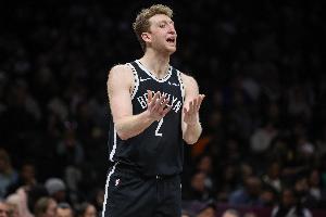 信心十足!沃尔夫一条龙撤步压哨三分 篮网首节轰出46分&领先26分GIF-沃尔夫压哨三分