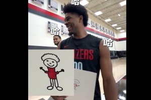 有捧哏潜质!看到乐福给他画的抽象画 斯库特·亨德森竟连连夸赞视频来自:微博@波特兰开拓者